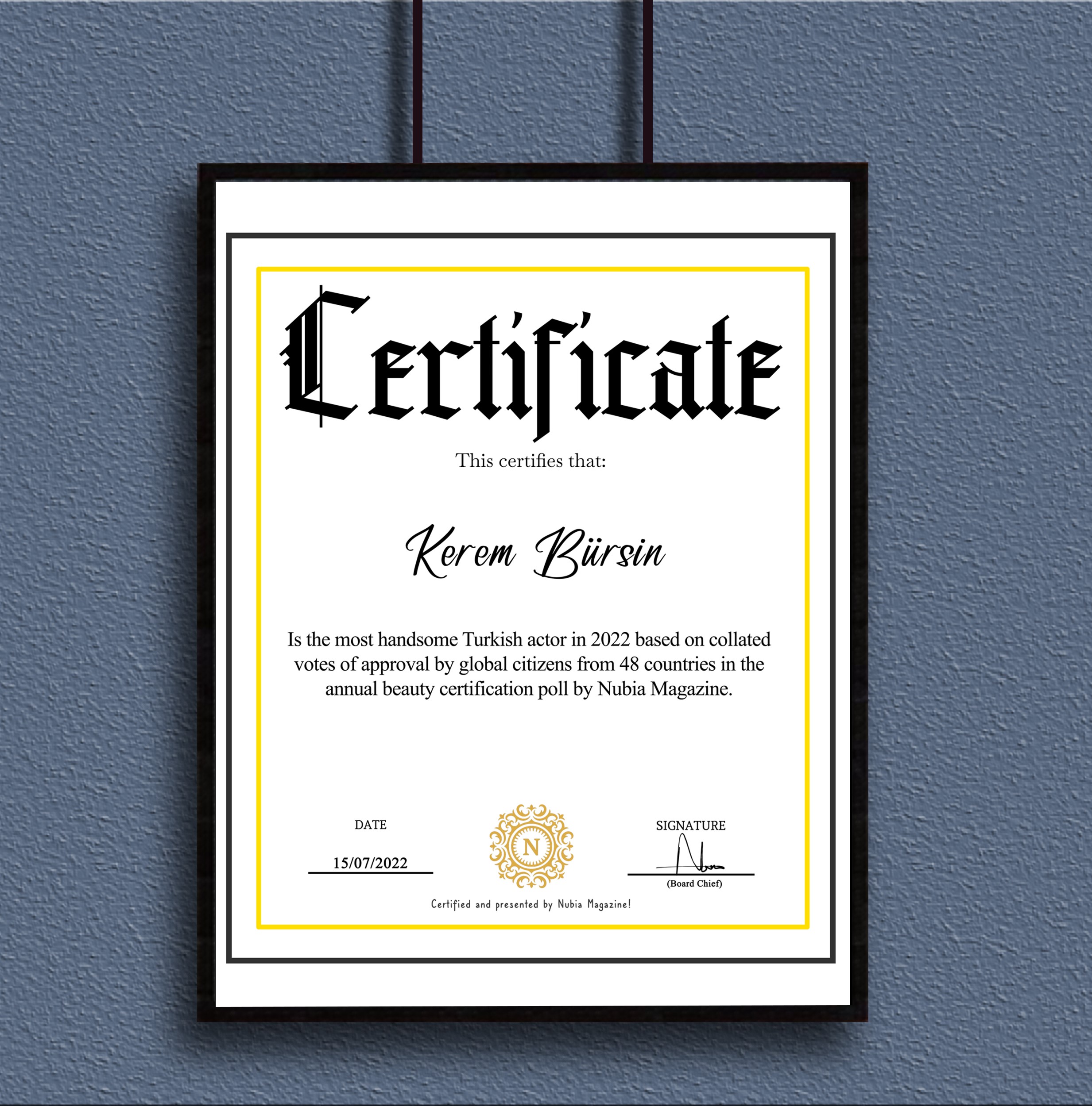 Kerem Bursin has been certified as the most handsome Turkish actor in 2022 based on collated votes of approval received from a total of 48 countries worldwide. Most of the votes came from countries like; Spain, Turkey, Italy, Brazil and many more…