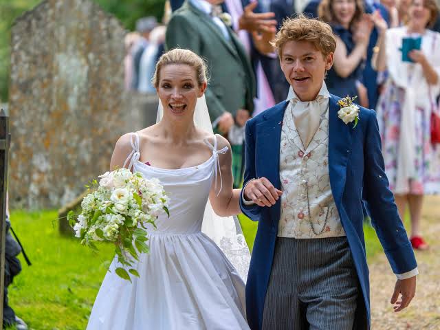 Thomas Brodie-Sangster, famed for Love Actually and The Queen’s Gambit, married Talulah Riley in a lovely ceremony in Anstey, Hertfordshire, on June 22, 2024. After meeting on the FX show Pistol in 2021, the couple announced their engagement in July 2023, thrilling fans with their romantic love tale. Riley arrived at St. George’s Church in a horse-drawn carriage, adding elegance to the pastoral wedding. Her bridal outfit was a satin gown with delicate straps and a lace-trimmed veil, while Brodie-Sangster wore a vivid three-piece suit with a blue tailcoat and floral waistcoat. In keeping with the couple’s lighthearted nature, their ceremony featured a horse with white roses and a dog as ring bearer.