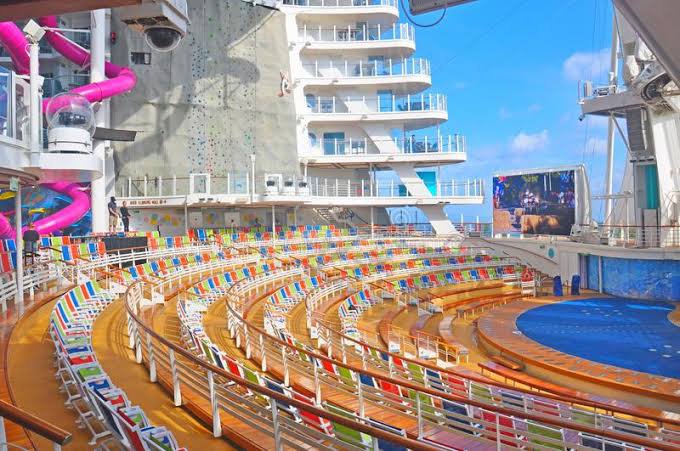 This ship belongs to Royal Caribbean’s Oasis-class cruise ships and has a length of 362 meters and a beam of 47 meters. This ship has amenities such as a 1,380-seat theater, a two-deck dance hall, and an ice skating rink. In December of 2010, she embarked on her maiden voyage in the west and east Caribbean.