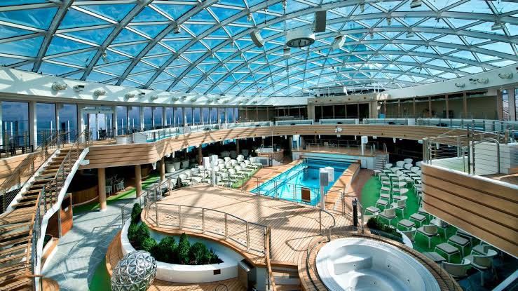 This magnificent ship is the first of Royal Caribbean International’s Oasis-class ships and the fourth largest cruise liner in the world. With a length of 361.6m and 16 passenger decks, this vessel can accommodate a maximum of 6,296 passengers. She includes a glass-enclosed solarium with a pool, basketball and volleyball courts, and a number of surf simulators. This ship also has an outdoor Aqua Theater and provides two-story loft rooms as well as deluxe sites with balconies. In December of 2009, she embarked on her inaugural cruise.