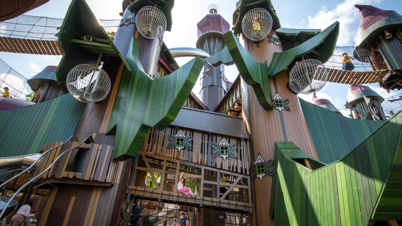 Lilidorei is a one-of-a-kind, enchanted play hamlet located at The Alnwick Garden in Northumberland, England. Its purpose is to encourage imaginative play and the pursuit of new experiences. It first opened its doors in 2023 and is widely regarded as the largest play structure in the world. Lilidorei is a fantasy architecture that combines natural materials with elements of the natural world. Its theme revolves around mysterious clans, legendary animals, and storytelling. Towering wooden buildings, rope bridges, slides, and hidden hideouts are all characteristics of this attraction. Not only is it intended for children, but it is also created for adults to enjoy the enchantment for themselves. The concept of Lilidorei is that it is always “Christmas” in the city, including the glittering lights and the magical atmosphere throughout the entire year. Screen-free play, creative expression, and exploratory activities are all encouraged by the experience.