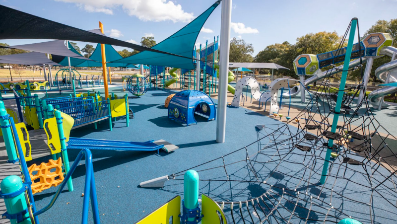 The Blaxland Riverside Park playground in Sydney is widely regarded as one of the most impressive and expansive playgrounds in all of Australia. This park, which is a part of Sydney Olympic Park, is well-known for its enormous play areas, which are designed to accommodate children of all ages (and even adults who feel like joining in on the fun). The fact that it is situated along the Parramatta River means that there are attractive paths for walking and biking in the surrounding area. A bonus is that there is no charge to enter, and there is parking available nearby (although it may be crowded on weekends).