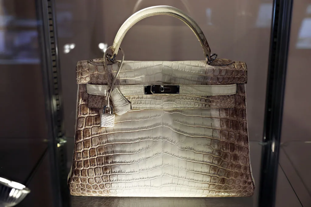 For $450,000 in 2022 Sotheby’s sold a Himalaya Birkin 30 with white gold hardware adorned with diamonds. Comprising niloticus crocodile skin, the highly sought-after purse has nine to ten carats of stones. Himalayas, even those without diamond gear, are among the rarest — and most costly — in the world, named for its gradient pattern evocative of the snow-capped Himalayan range.