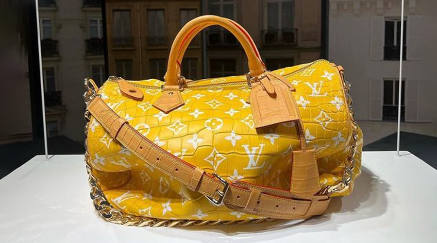 This opulent take on the well-known duffel bag by Louis Vuitton is made of yellow crocodile skin and features the brand’s signature monogram design. It also has a chain strap that is diamond-studded. At Paris Men’s Fashion Week in June, Pharrell Williams, the brand’s new creative director for menswear, showed this gorgeous bag.