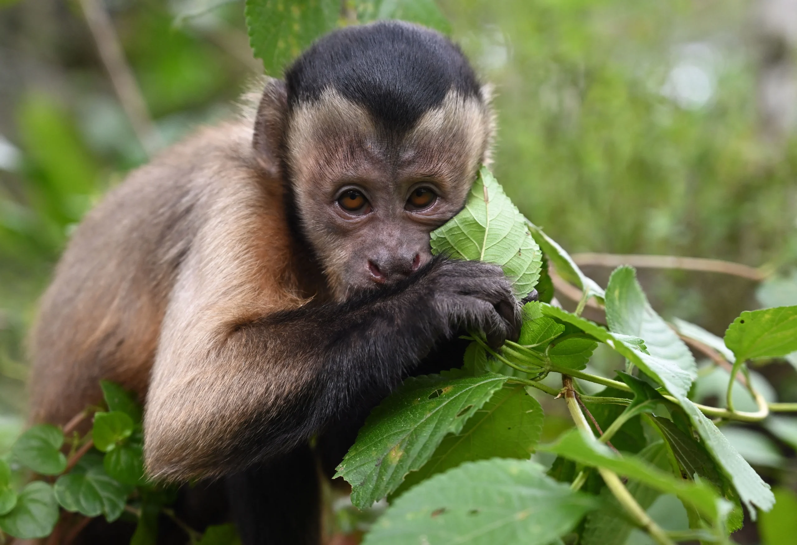 These clever eyes and naughty grins make capuchin monkeys some of the most fascinating primates. These social Central and South American monkeys are the sharpest New World monkeys, known for their problem-solving and tool use. Capuchins live in deep jungles from Nicaragua to northern Argentina. Arboreal species, they thrive on swinging through the trees. Their prehensile tails operate as a fifth limb, enabling agile rainforest canopy navigation.