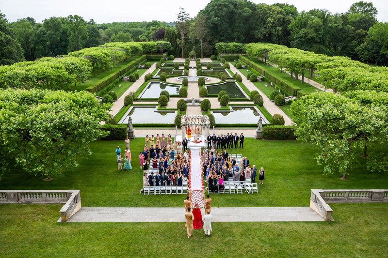 Oheka Castle is a French-style chateau with 127 rooms that was built in the 1910s for financier Otto Hermann Kahn. It is located in Huntington, Long Island. Its well-kept gardens, big staircases, and fancy ballrooms make it feel like a European aristocracy. The Grand Ballroom, with its high ceilings and crystal chandeliers, is a popular place for fancy parties. The Formal Gardens are a romantic place to be outside. Packages start at $60,000 and include gourmet food and fancy suites for guests. Oheka is a fairytale place for elite weddings because it has hosted celebrities like Kevin Jonas and been in Taylor Swift’s “Blank Space” video.
